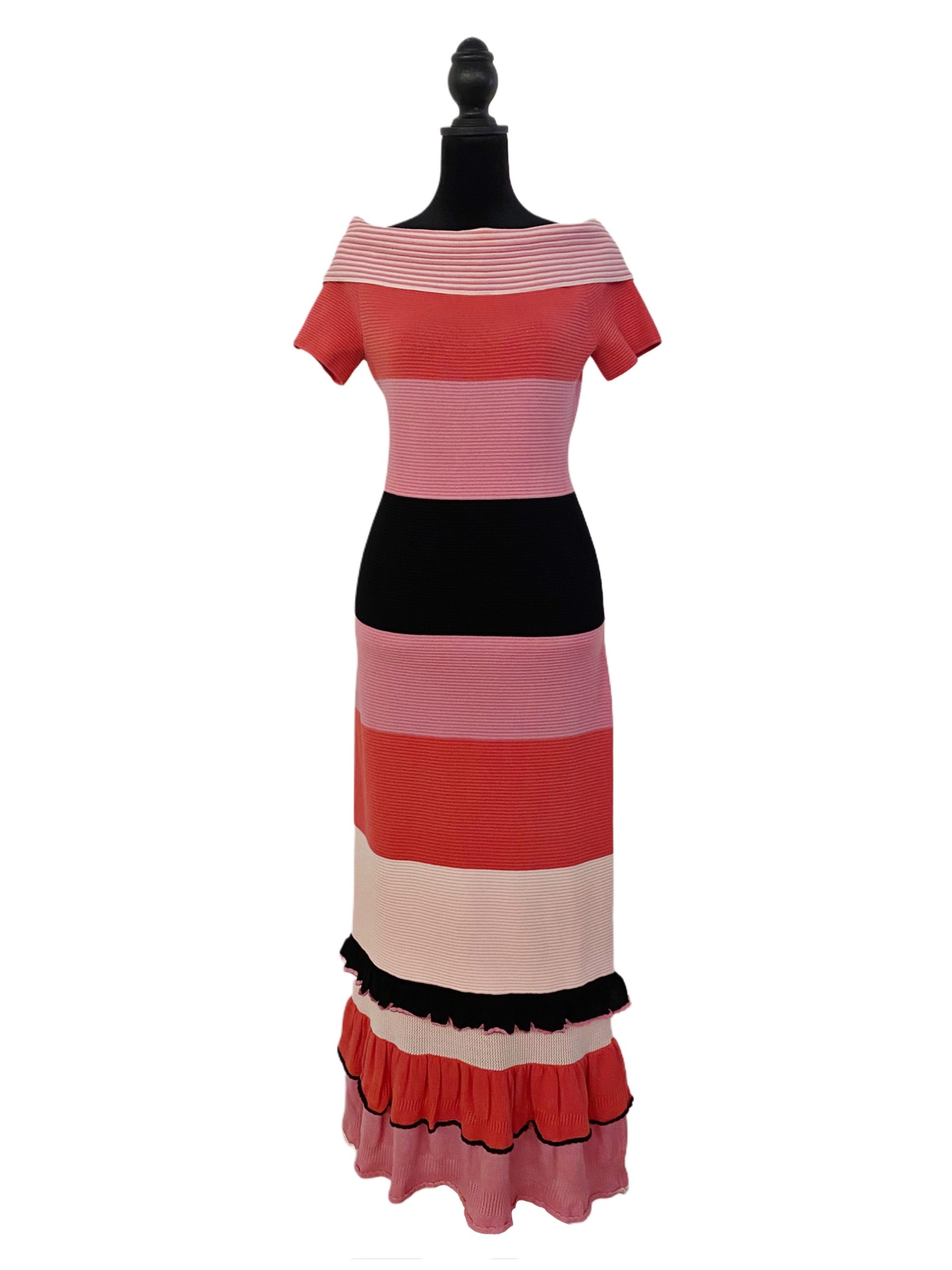 Prabal Gurung Knitted Off the Shoulder Pink Striped Dress